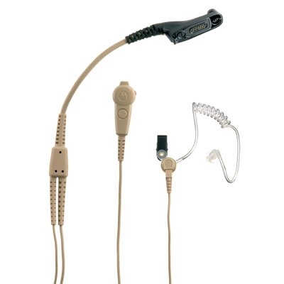Dvojvodičová audio sada so slúchadlom s priehľadným zvukovodom a mikrofónom s integrovaným PTT tlačidlom pre rádiostanice rady DP3000. Béžové prevedenie.